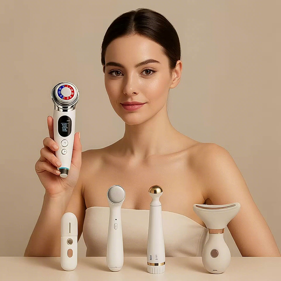 Experience visible transformation with non-invasive skincare technology designed to lift, sculpt, and revitalize your skin from home. Our multifunctional beauty device combines: